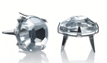 - Decorative rivets with hexagonal sanded rhinestones