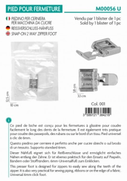 Galedi Pins 2 Way Zipper Foot – Snap-On Zinc Sewing Accessory