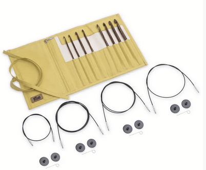 The Tunisian crochet technique requires specific hooks: Tunisian crochet hooks. The technique produces modern patterns that appear woven. This set contains eight high-quality crochet hooks in sizes 3.5-8 mm and four cords in lengths 50-110 cm. The length of the cords includes the needle points. This means that your Tunisian crochet hooks can easily be combined with the right cord and then used for a range of projects: cushions, blankets, scarves, tablecloths and oven gloves. Stitch stoppers ensure a secure hold. Our Natural range Tunisian crochet hooks are made from fine-grained wood with classy individual wood grain for an enticing, warm feel. The surface is polished smooth and the connection between point, cap, and cord, causes no friction. The crochet hook points are well organized in the storage pouch, rolled-up it can be securely stored without needing much space. The colour combination mustard and beige works well with the brown colours of the high-quality wooden needles. Accessories consisting of stitch stoppers and assembly pin are securely stowed in the interior zip pocket – perfectly practical both for home or out and about.