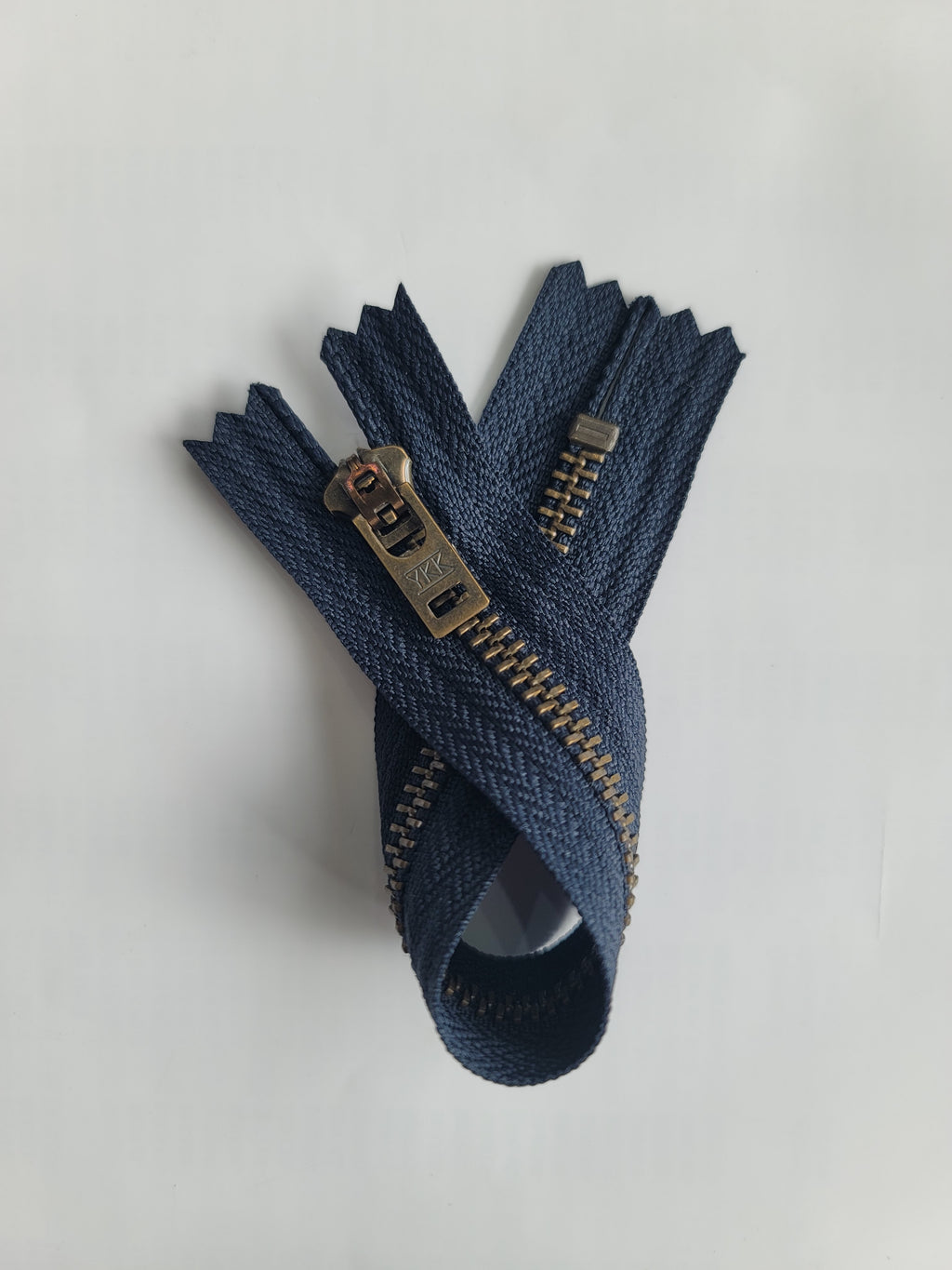 YKK, Antique Brass metal, C5, 18cm closed end zip.