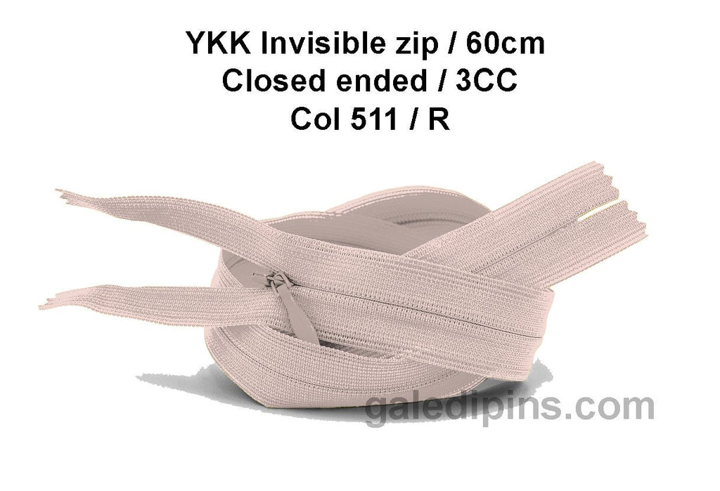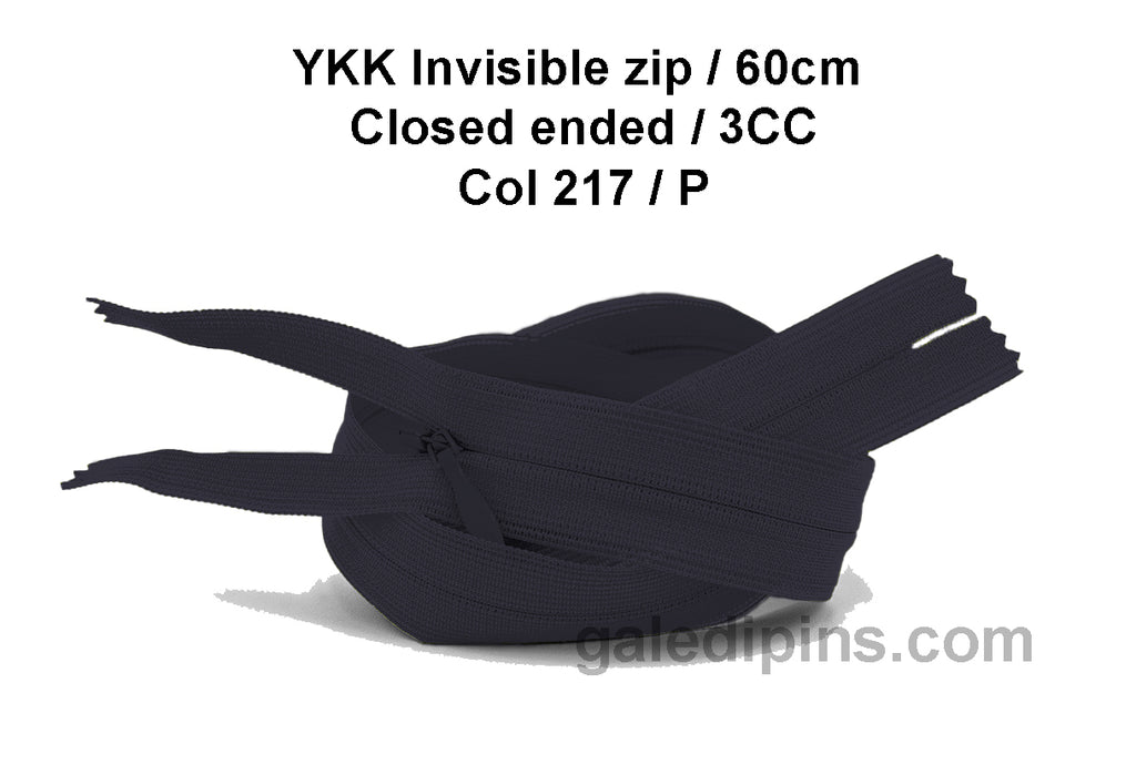YKK Invisible Closed Ended Zipper – 60cm Polyester Metal 3cc