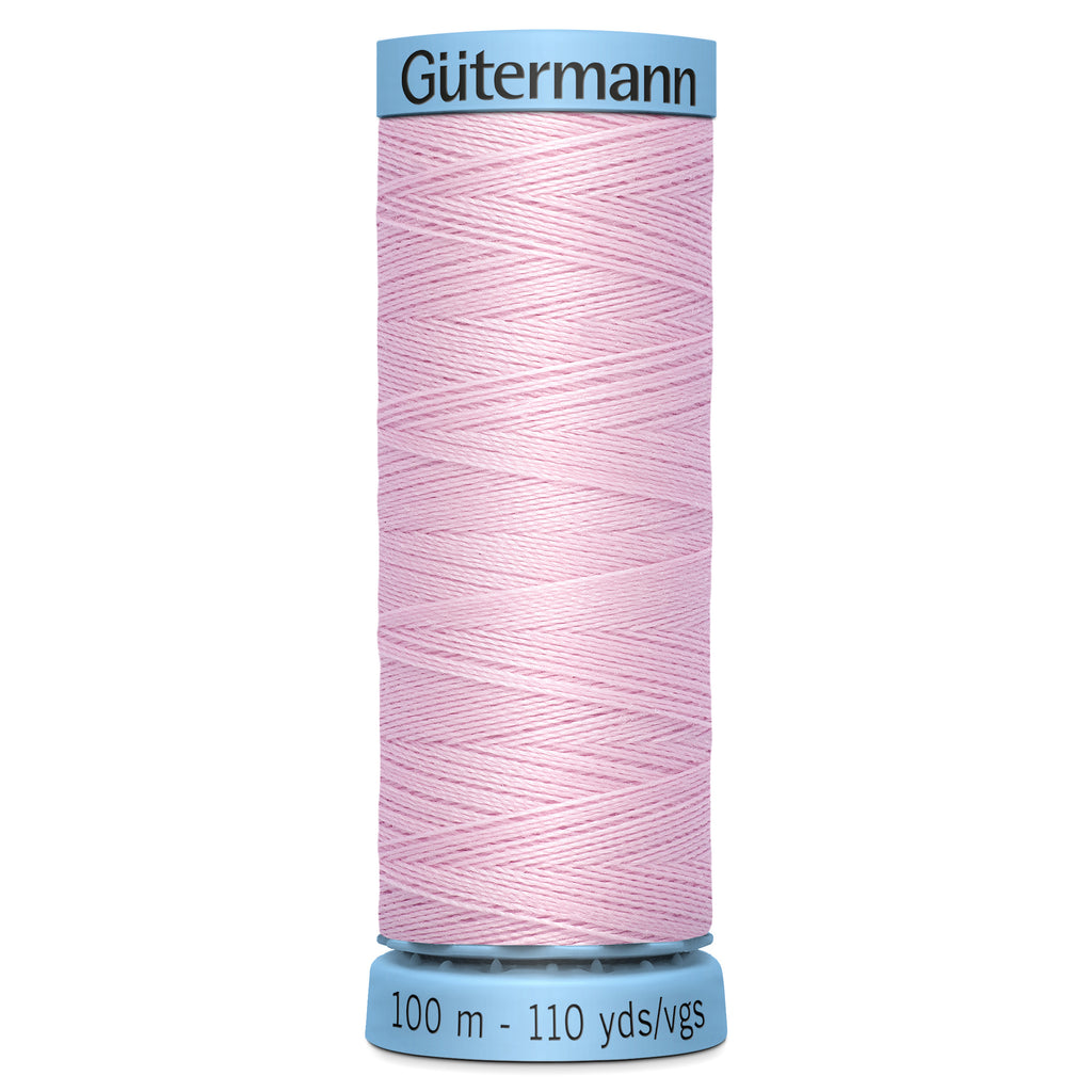 Synonymous with quality and luxury. Suitable for hand and machine sewing. Applications: fine closing seams with fine gloss, fine ornamental stitches and decorative seams, overlock and safety seams, buttonholes and for sewing on buttons. Soft and supple. Tear and abrasion resistant. Elastic and extendible. Light-resistant and colour-fast. Recommended needle and size: Universal, size 80. 100% silk. Machine wash 40 degrees. Do not bleach. No tumble dry. Iron at low temperature.