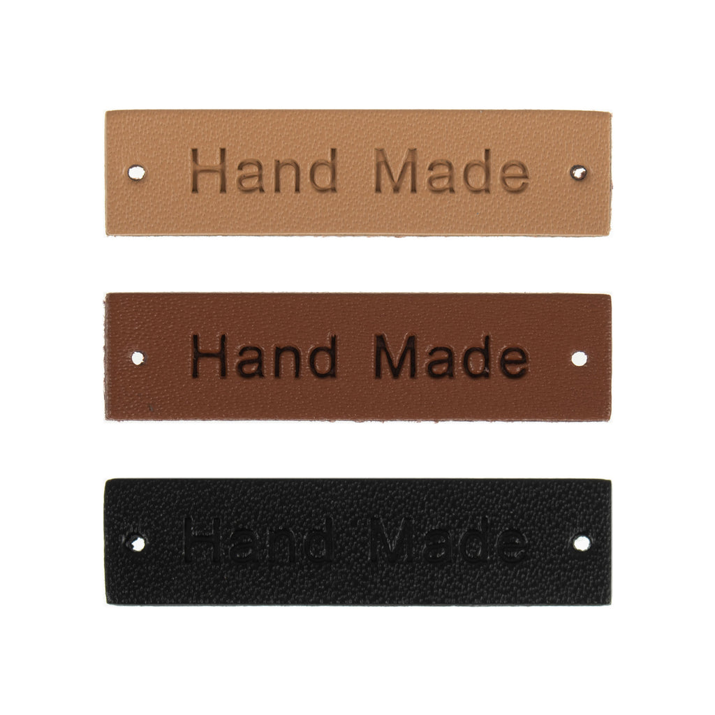 Feature: Two pre-drilled holes – Eliminates the struggle of piercing thick leather with a standard needle → Benefit: You can easily attach these clothing labels to finished items in seconds.