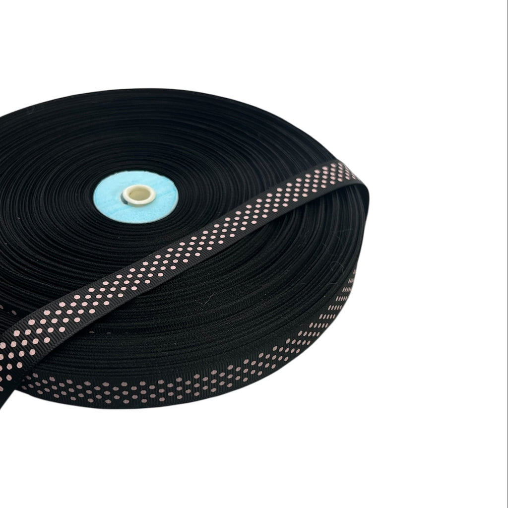 Grosgrain Ribbon – Black with Pink Polka Dots | Sold by Meter