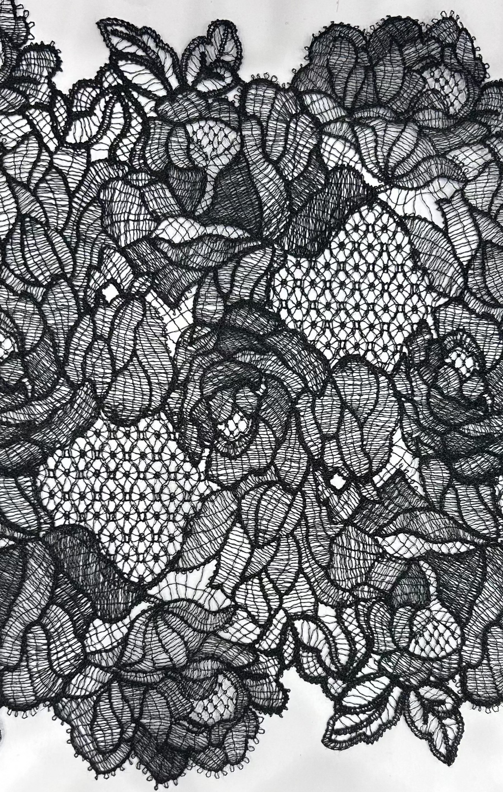 Galedi Pins Polyester Lace Trim – Black Ivory, Sold by Meter