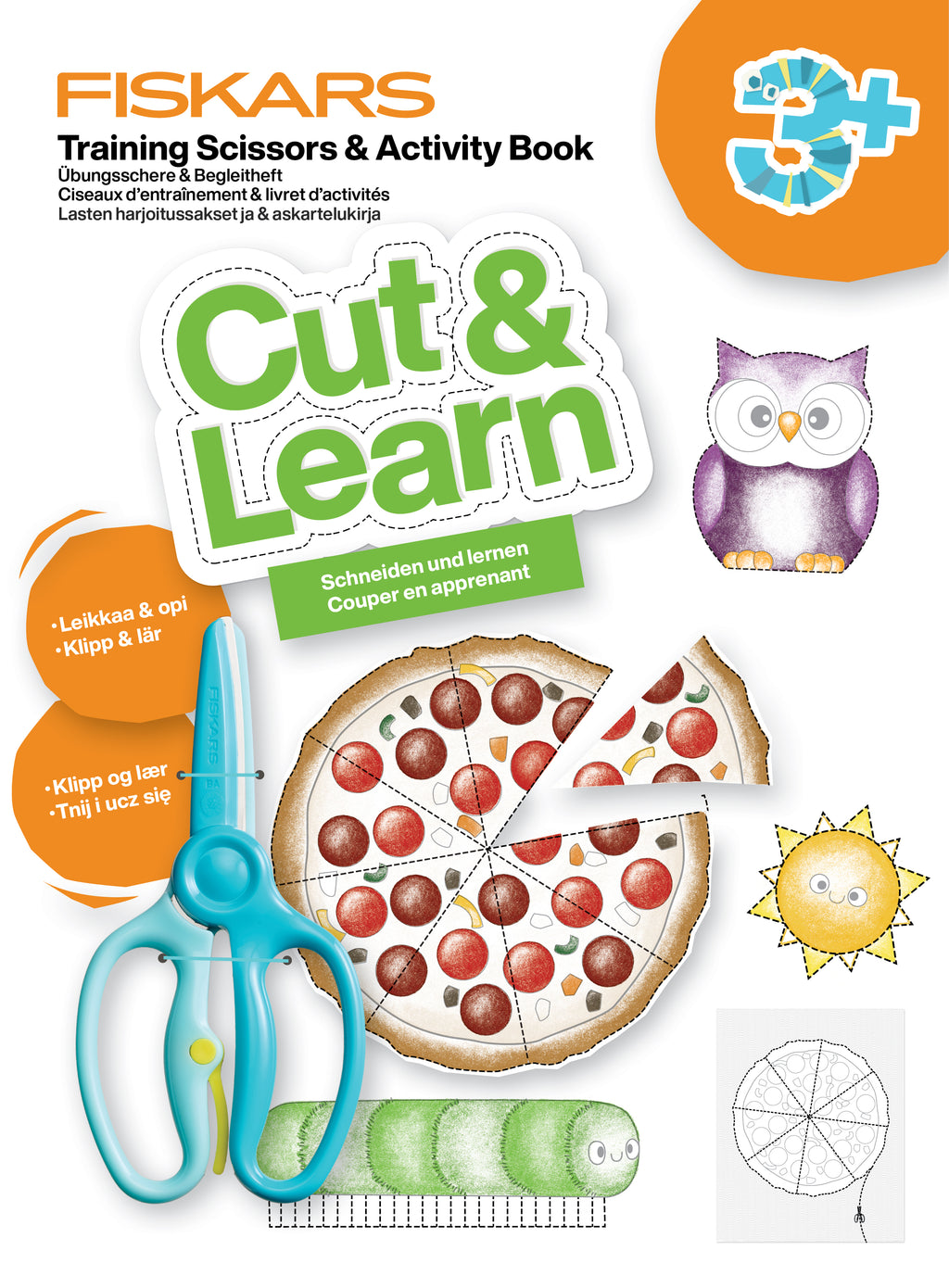 Fiskars Scissors & Activity Book: Kids Training 3+ is the bridge. Spring-action training scissors reopen automatically, so tiny hands focus on direction, not force. Rounded, plastic-covered blades keep Christmas crafts safe, while ambidextrous handles suit left- or right-handed cutters. The -page book guides you from short snips to curves, angles, and playful puzzles that reinforce shapes, counting, and ABCs. Watch fine-motor skills and parent-child bonding grow with every page.
