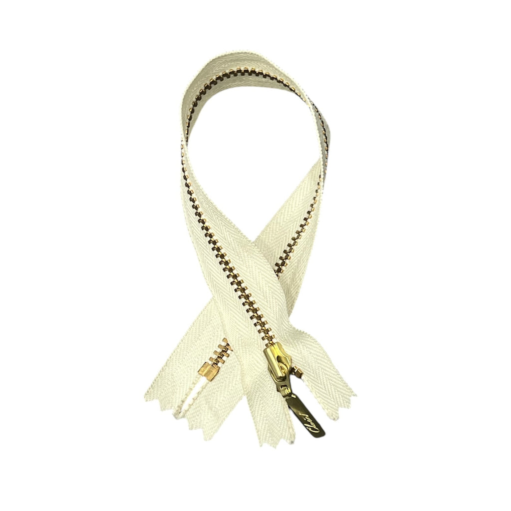 - Polished brass teeth and slider give rich, lasting colour that won’t flake after dry-cleaning.