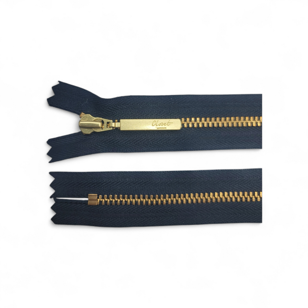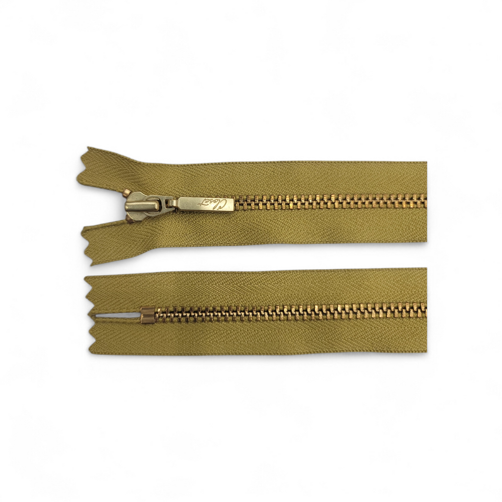 Upgrade your next piece with the End Gold Metal Zip chosen by ateliers worldwide. Add your preferred length to cart now and sew tomorrow’s heirloom today.
